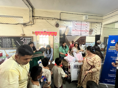 Educational Support and Nutritional Aid On December 22, 2023, a series of supportive initiatives were carried out at Kavle Math Marathi Medium School in Teenbathi, Mumbai. These included educational support, nutrition food distribution, and blanket distribution for the school's students and staff. Supported by the Health for You Foundation, these efforts benefited 150 individuals, ensuring they received necessary educational resources, nutritional food, and warmth during the winter season. Throughout December, IWC Bombay Queens Tiara undertook various projects aimed at improving mental health awareness, providing educational and nutritional support, and caring for animals, reflecting the club's broad commitment to community service and well-being.